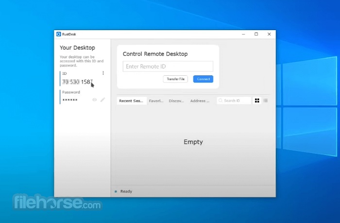 تتميز واجهة مستخدم RustDesk لأجهزة الكمبيوتر بالبساطة والسهولة والوضوح.